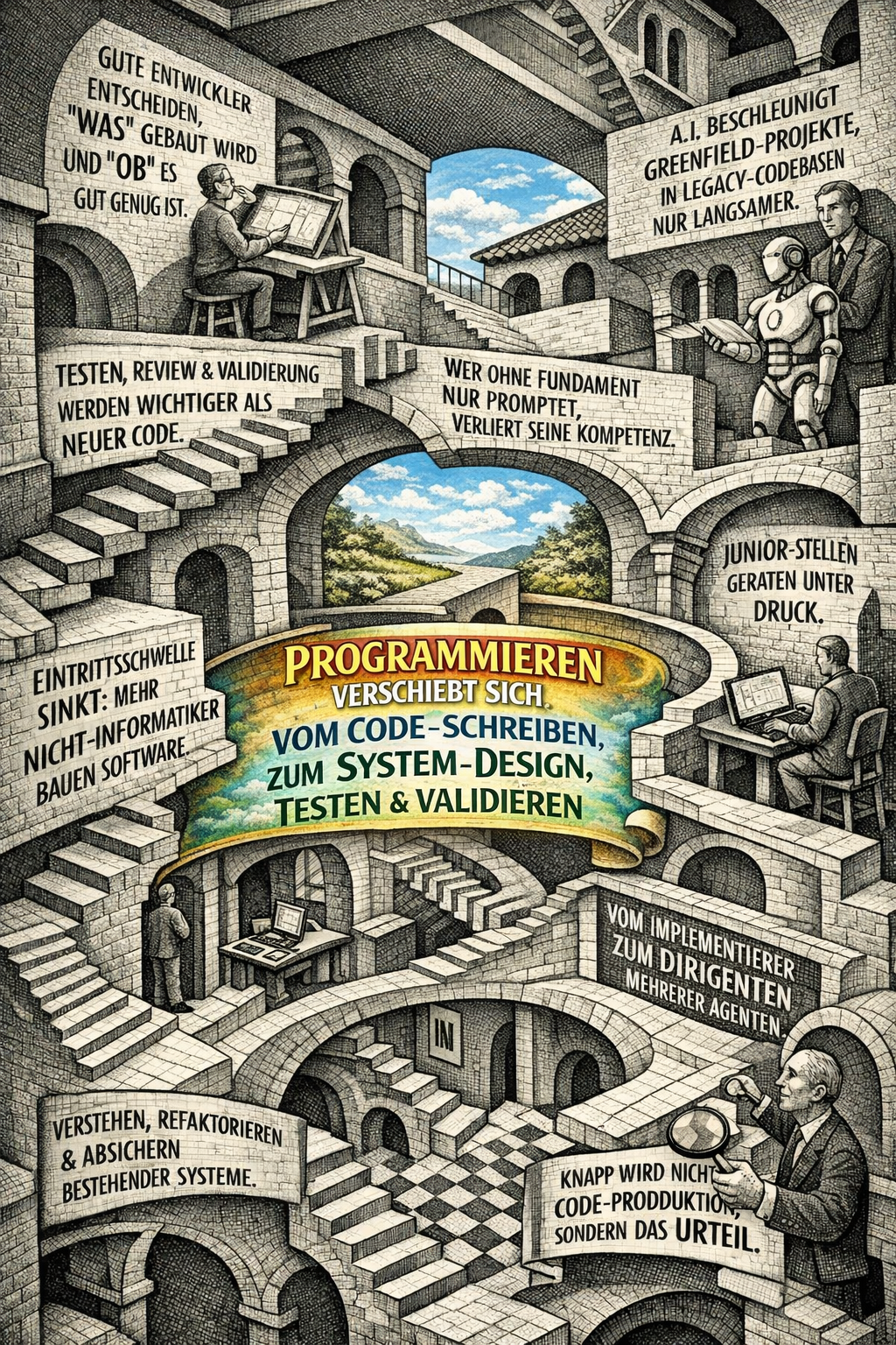 - Gute Entwickler schreiben künftig weniger selbst, entscheiden aber viel häufiger, was gebaut wird und ob es gut genug ist.